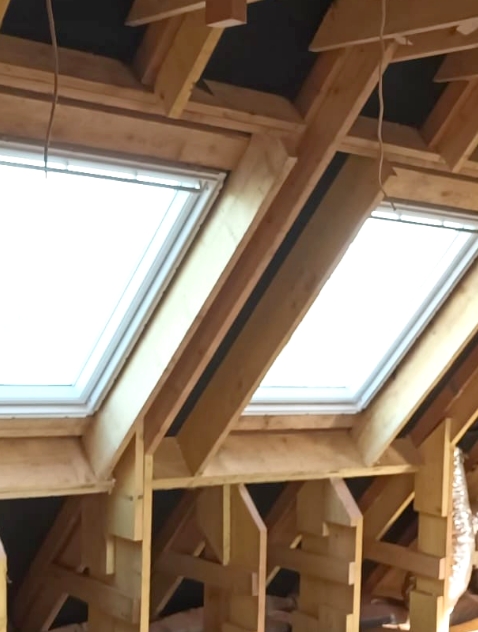 4. L’étape suivante de notre travail a pour but d’élaborer l’emplacement des fenêtres de toit en ajoutant des chevêtres de toit à la côte des fenêtres commandées. Nous nous assurons aussi de la mise en place du coffret d’étanchéité et de la pose des raccords. Par la suite, nous créons la trémie destinée à accueillir le futur escalier de la maison. Nos trémies sont conçues pour s’adapter à la structure du solivage.