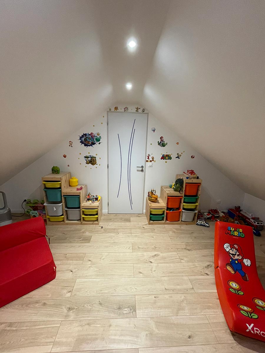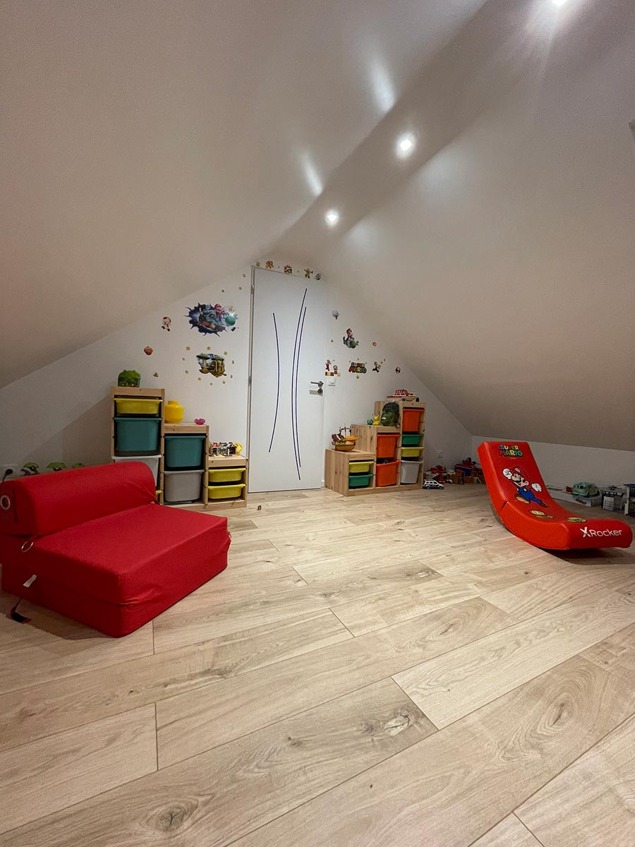 Ce projet clé en main illustre nos capacités à offrir des solutions sur mesure, parfaitement adaptées aux besoins uniques des familles. RHP Combles est votre partenaire idéal pour transformer des combles inutilisés en espaces de vie pratiques et agréables. Que vous souhaitiez ajouter des espaces de jeux, un bureau ou tout autre aménagement, contactez-nous.