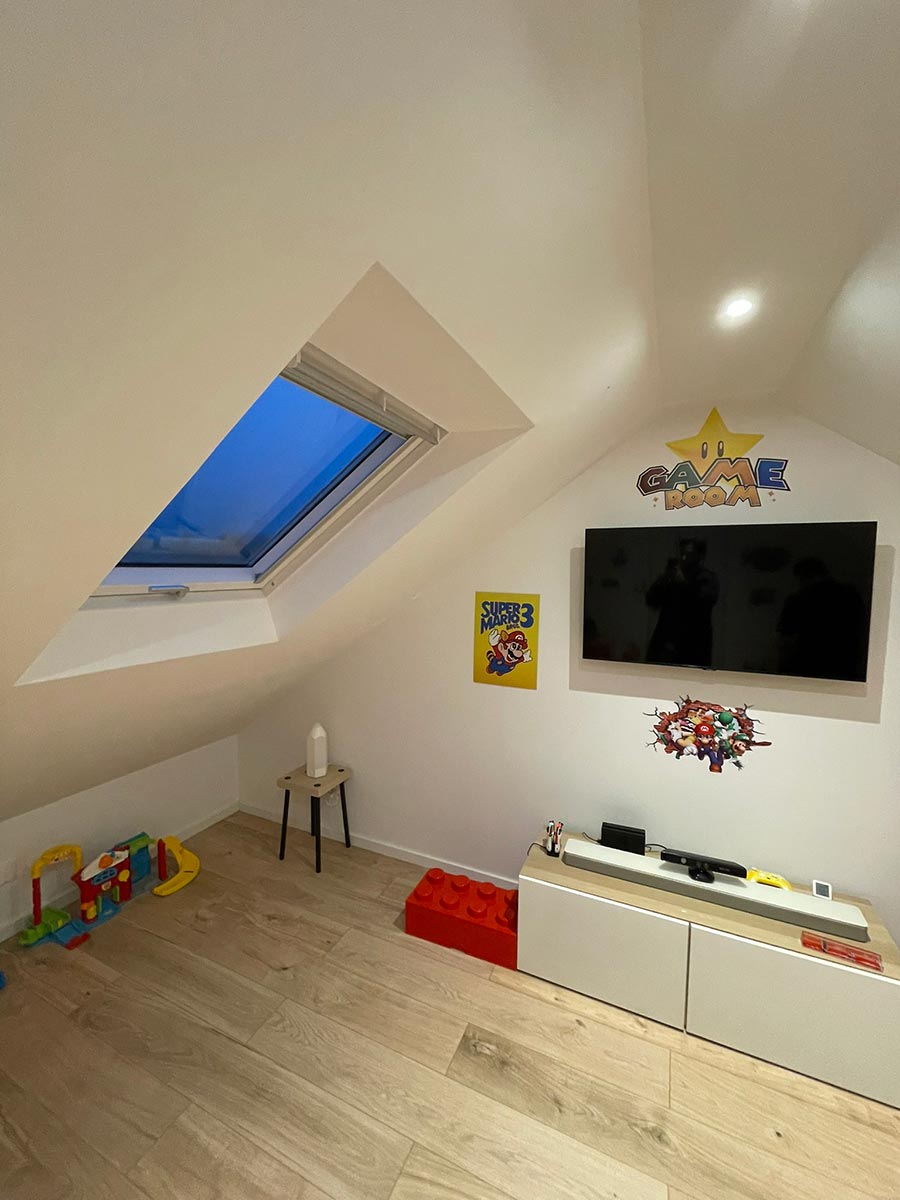 Pour maximiser l’apport de lumière naturelle, nous avons installé un Velux 134×98. Ce Velux baigne les nouvelles pièces de lumière et crée une atmosphère accueillante.