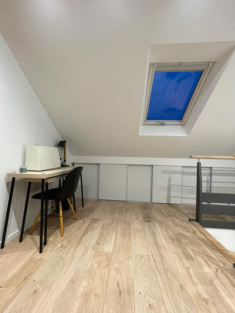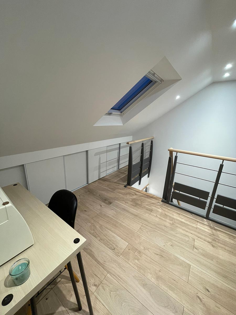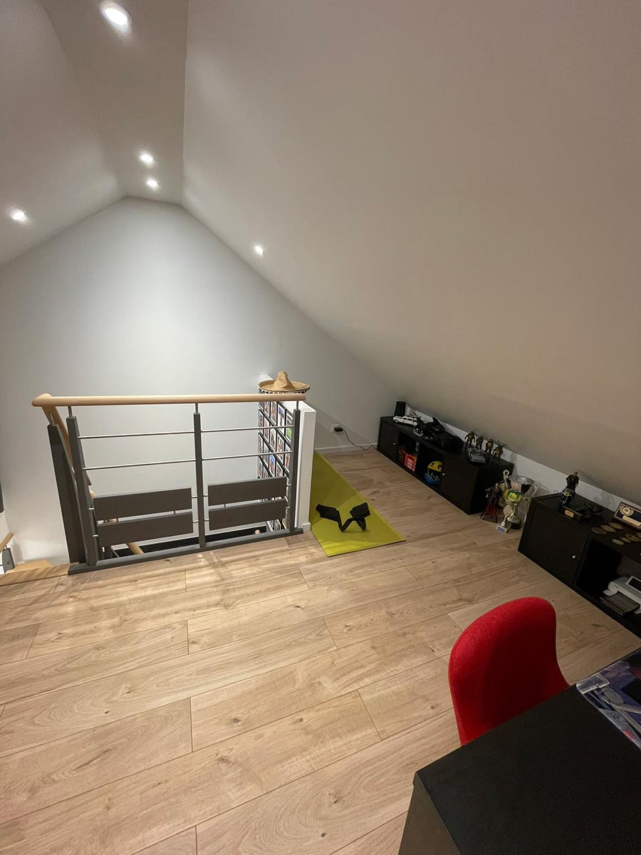 En utilisant notre solution Optimum, nous avons transformé cet espace inutilisé en un lieu de vie multifonctionnel. Cette conversion a permis de libérer plus de 40m2 au sol, dont 14m2 habitables. Grâce à cette optimisation, nos clients peuvent pleinement tirer parti de chaque mètre carré disponible.