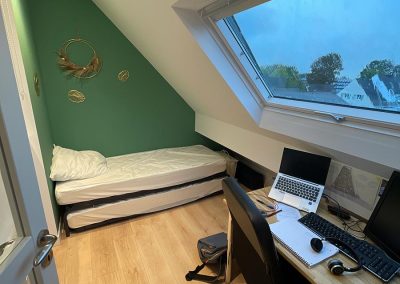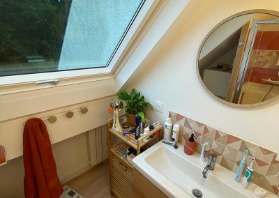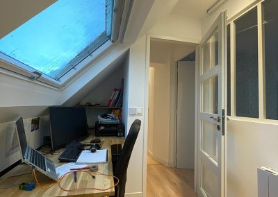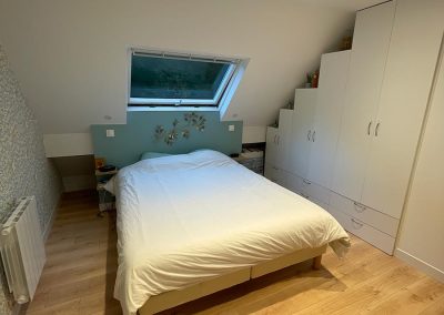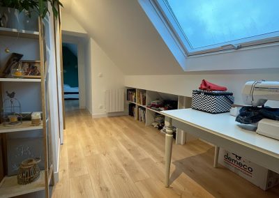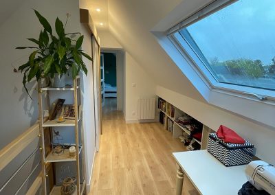 Pour améliorer l’éclairage naturel du comble, nous avons installé un Velux de 114×118, inondant les nouvelles pièces de lumière naturelle et créant ainsi une atmosphère chaleureuse et accueillante.