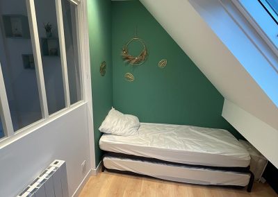 Les propriétaires attendaient un nouvel enfant et avaient besoin de chambres supplémentaires. Nous avons donc conçu des espaces de couchage pratiques et confortables, répondant parfaitement à cette nécessité familiale.